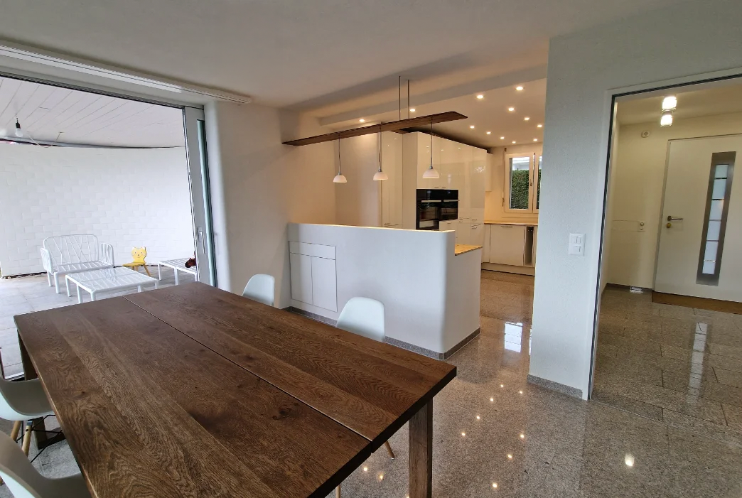 This 1980s villa, situated on a 600m2 plot near Basel, originally presented challenges common to many Geneva residents: a compact 130m2 living space over two levels felt dated and lacked a seamless connection to the outdoors. We transformed this property into a modern, inviting home, maximizing every square meter. Our design reconfigured walls and windows to create a brighter, more open interior, while a new covered outdoor sitting area extends the living space and captures stunning valley views. By converting the unused attic into a luxurious master suite with ensuite bathroom, we significantly increased the villa’s functionality and value. A state-of-the-art open-plan kitchen and updated energy-efficient heating system complete this contemporary renovation, proving that thoughtful design can create spaciousness and comfort, even within a limited footprint.